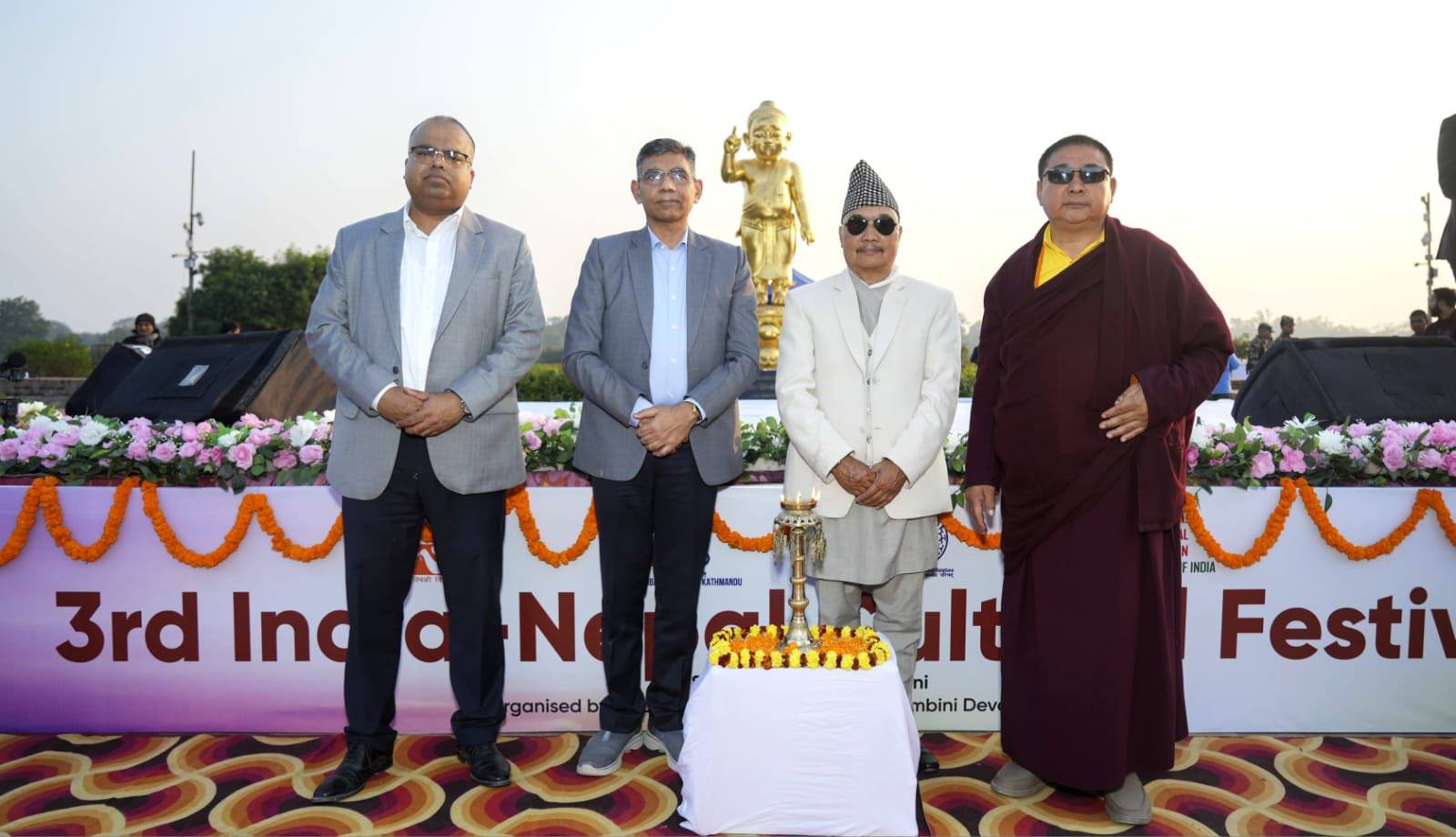 The third India -Nepal Cultural Festival in Lumbini was jointly inaugurated by Hon’ble Mr. Krishna Bahadur Gharti Magar, Governor of Lumbini Province; Mr. Munu Mahawar, Additional Secretary (North), Ministry of External Affairs, GoI; Dr. Lharkyal Lama, Vice Chairman of Lumbini Development Trust; and DCM @IndiaInNepal Dr. Rakesh Pandey.